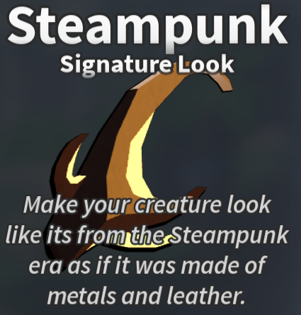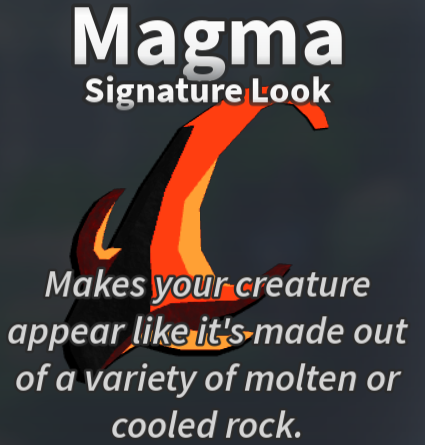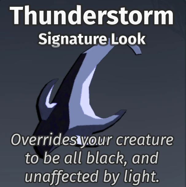 There is no meaningful difference between a Theme and a Signature Look. Both have a limited palette of customization and both may come with a particle effect when equipped. These palettes only have four colors to choose from. They appear in editor like a palette with only four colors. Certain colors may have a star above them, indicating a particle effect. Each color also has a set material, with the colors marked with a star more often than not having a different material than the rest (i.e. neon or forcefield over the other marble-themed colors). Removing a Signature Look or Theme will reset your creature's skin. Themes and Signature Looks are permanent and return to your inventory when deleting a creature slot.