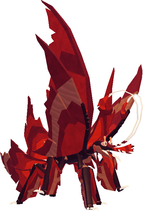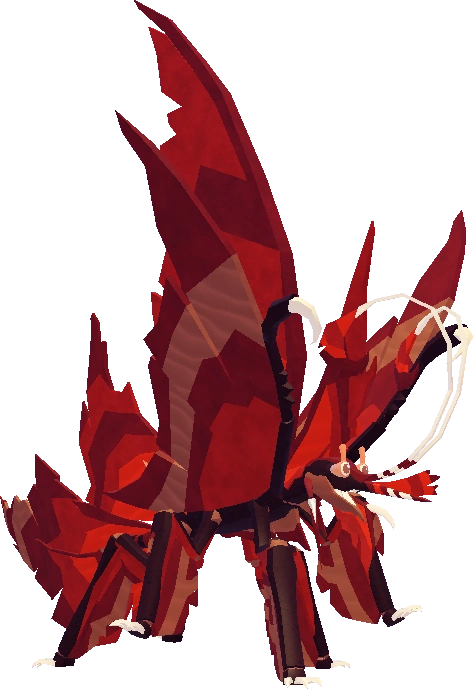 The Sha'Rei is a hexapedal arthropod creature that largely resembles leaf bugs. As such, it has an overall insect-like appearance, with maple leaf-like appendages protruding from certain parts of its body (e.g. the neck, legs, and tail), which consist of colors that would likely be presumed as autumn hues. The Sha'Rei also possesses two pairs of antennae and claws that come from the tips of the lower maple leaf extremities.
